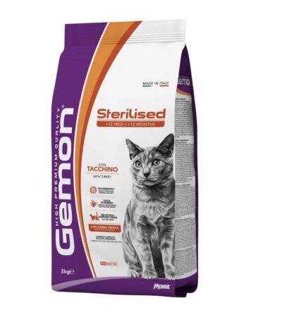 GEMON GATO ESTERILIZADO (+12 MESES) CON PAVO es un alimento completo para gatos adultos esterilizados. La formulación se caracteriza por ingredientes de calidad como el pavo, fuente de nutrientes esenciales, y el arroz, fuente de carbohidratos, cocidos y de alta digestibilidad mediante el proceso de extrusión.