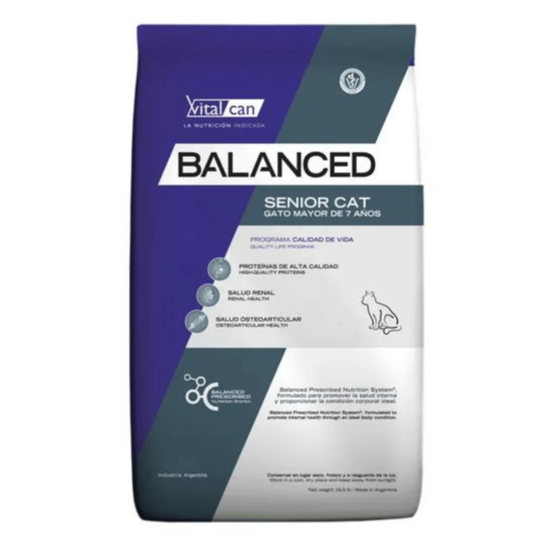 Vitalcan Balanced gato Senior es un alimento formulado para responder a las necesidades de gatos mayores a 7 años.