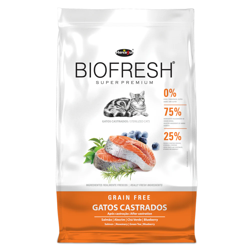 GATOS CASTRADOS Biofresh Súper Premium para Gatos Castrados es un alimento libre de granos, completo y balanceado, especialmente formulado para carnívoros por su alto contenido proteico y bajo contenido de carbohidratos.